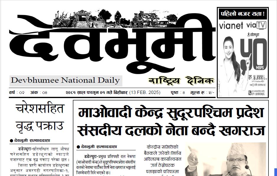 देवभूमी राष्ट्रिय दैनिक २०८१ फागुन १ गते