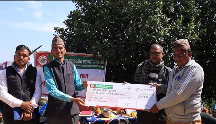 किसान बहुउद्देश्यीय सहकारीका सदश्य गौरा देबी धामीको यही मंसिर २८ गते दुर्घटनामा परी निधन भए पछि ऋण लिदा सहकारी संस्थाले गरिदिएको विमा बाफतको रकम तथा अन्य सुविधाको रकम आज एक कार्यक्रमका बिच हस्तान्तरण गरिएको हो ।