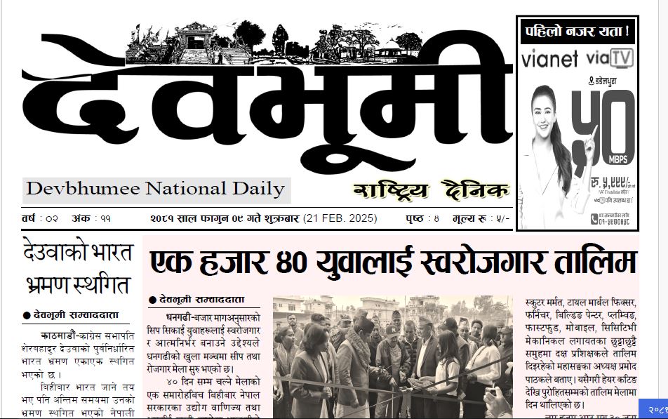 देवभूमी राष्ट्रिय दैनिक २०८१ फागुन ९ गते