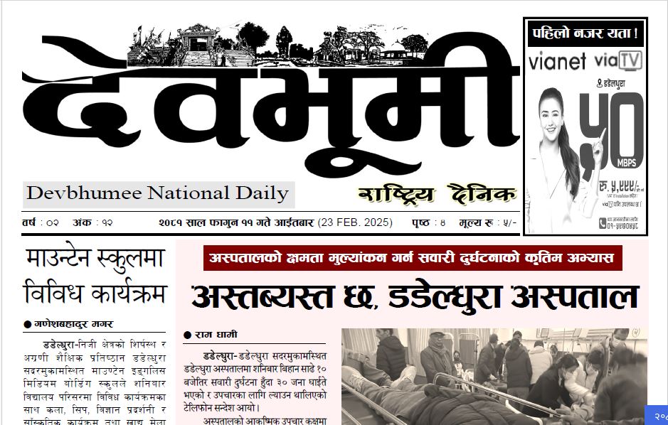 देवभूमी राष्ट्रिय दैनिक २०८१ फागुन ११ गते