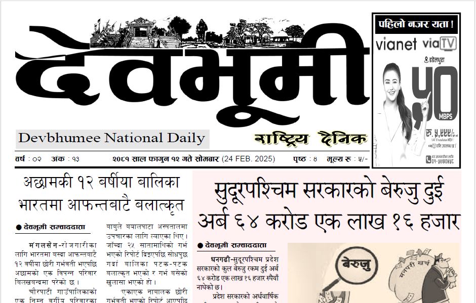देवभूमी राष्ट्रिय दैनिक २०८१ फागुन १२ गते