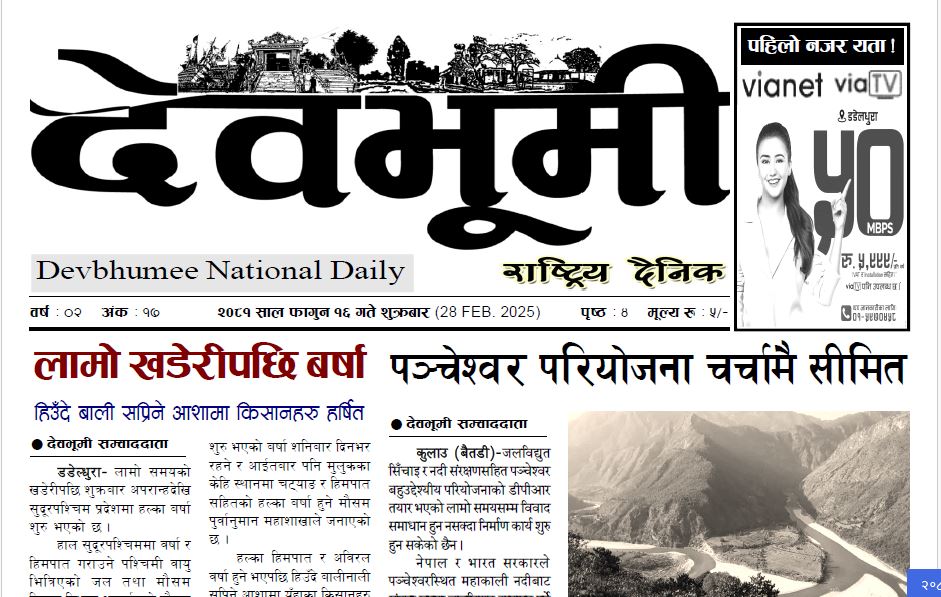 देवभूमी राष्ट्रिय दैनिक २०८१ फागुन १६ गते