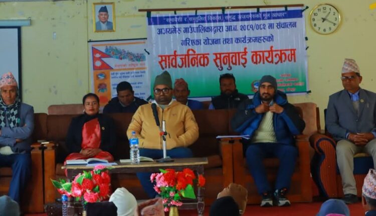 आज गाउपालिकाको सभाहलमा गाउपालिका अध्यक्ष उमेश प्रसाद भट्ट “बिकास”को अध्यक्षतामा सार्वजनिक सुनुवाई सम्पन्न भएको हो ।