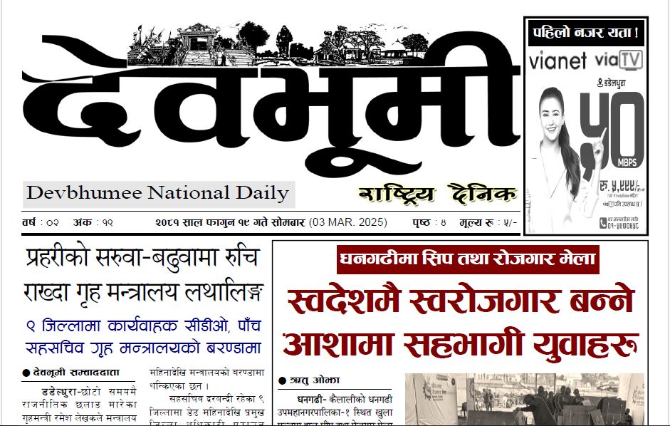 देवभूमी राष्ट्रिय दैनिक २०८१ फागुन १९ गते