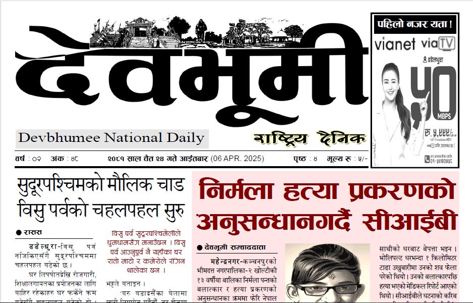 देवभूमी राष्ट्रिय दैनिक २०८१ चैत्र २४ गते