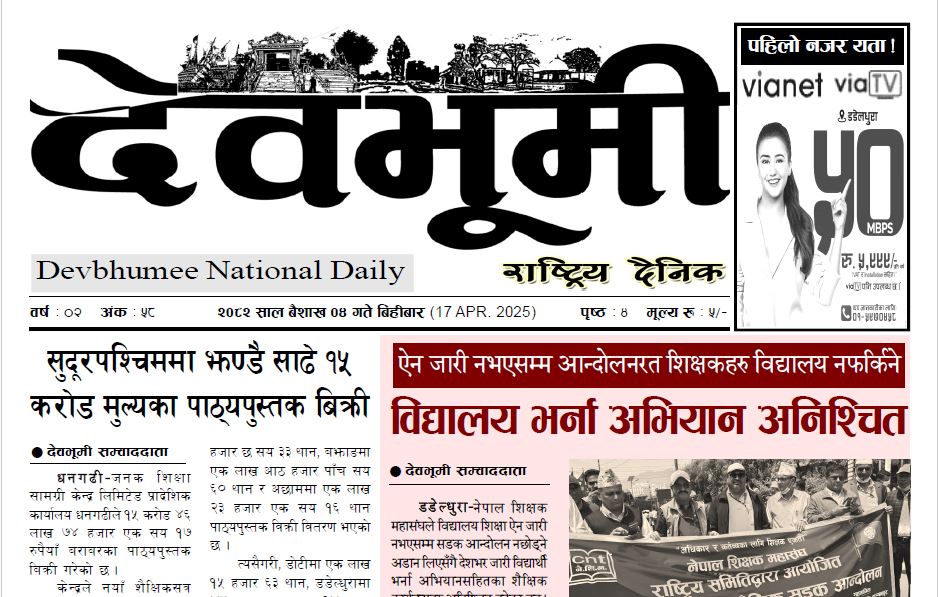 देवभूमी राष्ट्रिय दैनिक २०८२ बैशाख ४ गते