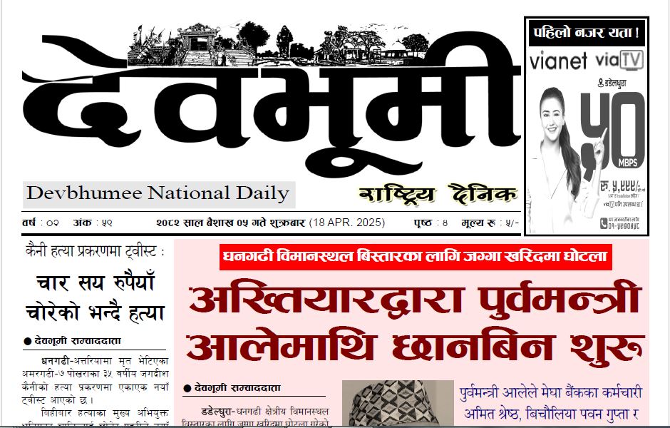 देवभूमी राष्ट्रिय दैनिक २०८२ बैशाख ५ गते