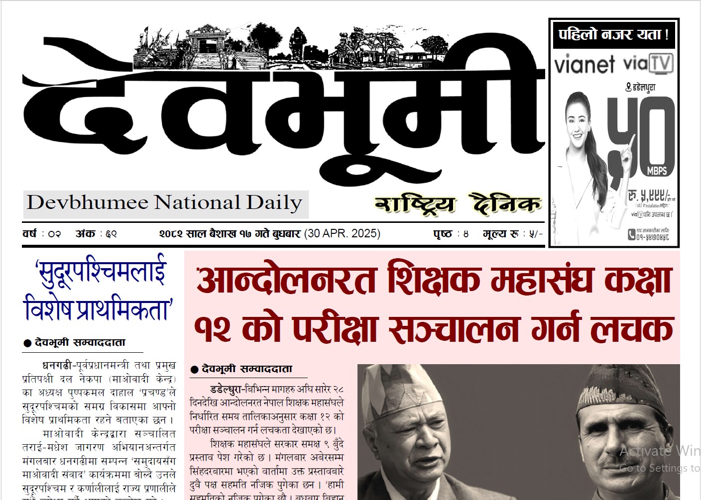 देवभूमी राष्ट्रिय दैनिक २०८२ बैशाख १७ गते