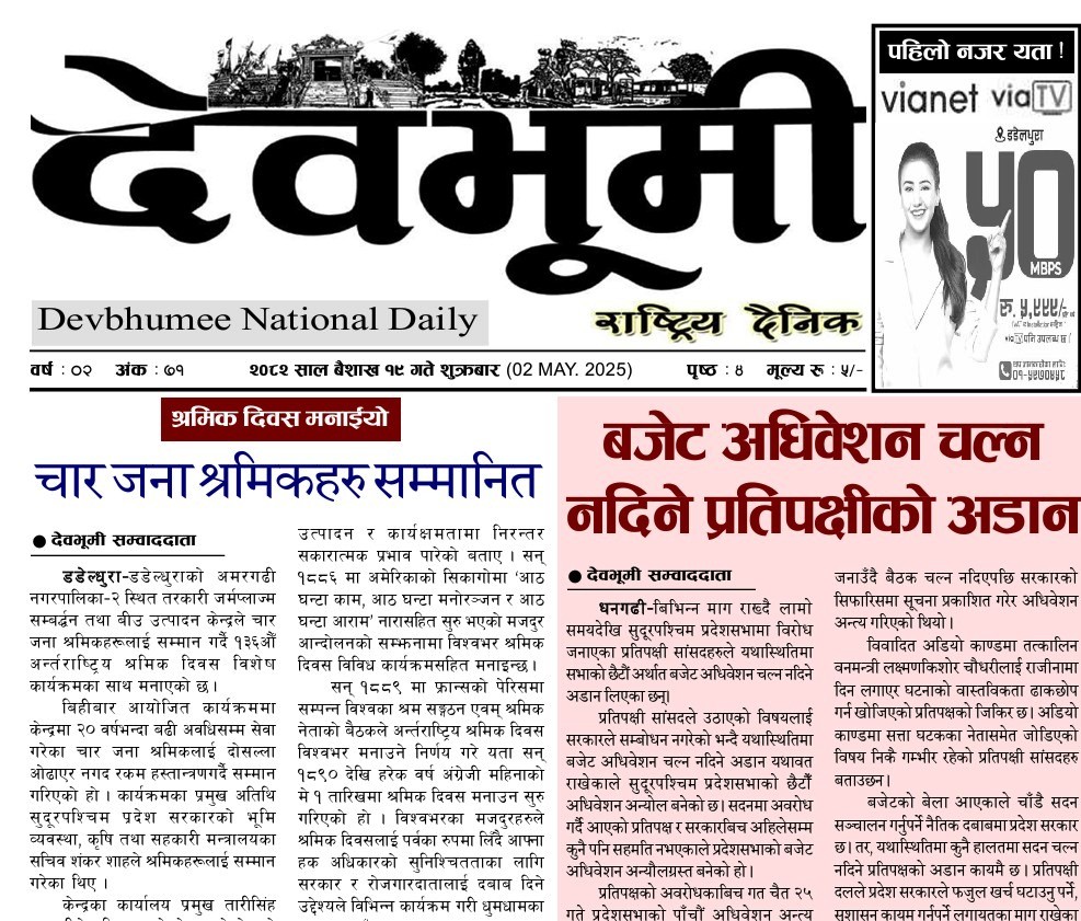 देवभूमी राष्ट्रिय दैनिक २०८२ साल बैशाख १९ गते शुक्रबार By झिल्काे न्युज On २०८२ बैशाख १९, शुक्रबार ०६:५१