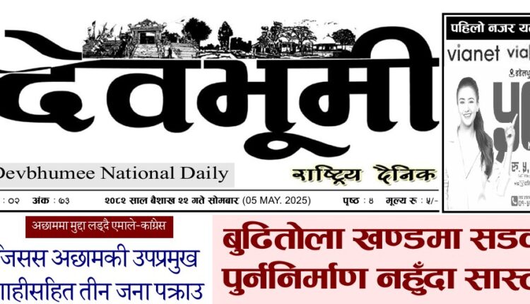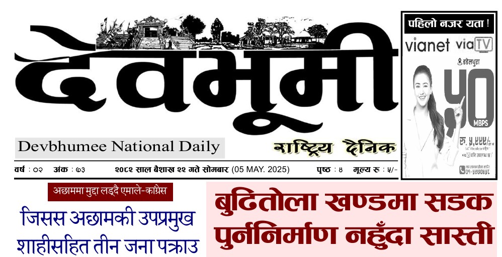 देवभूमी राष्ट्रिय दैनिक २०८२ साल बैशाख २२ गते सोमबार