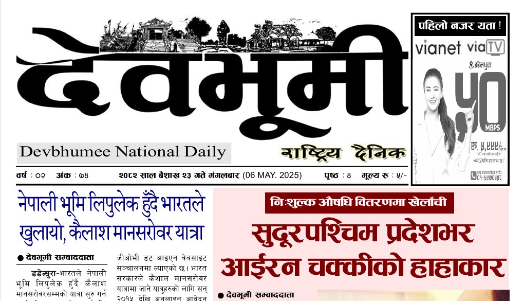 देवभूमी राष्ट्रिय दैनिक २०८२ साल बैशाख २३ गते मंगलबार By झिल्काे न्युज On २०८२ बैशाख २३, मंगलवार ०६:०६