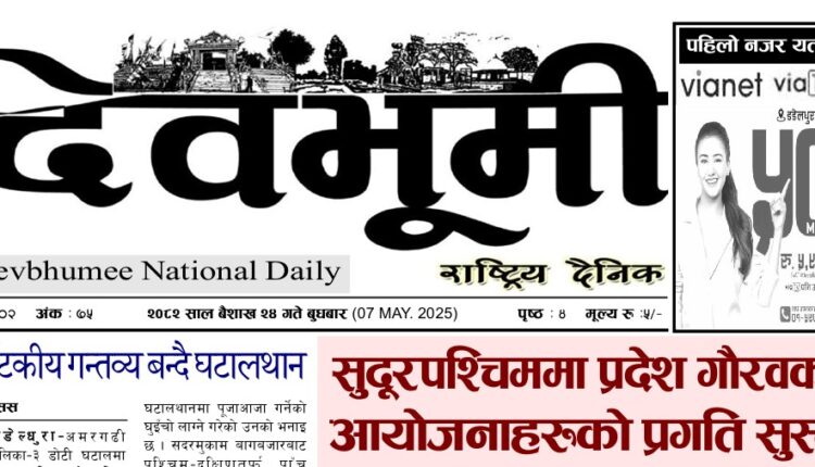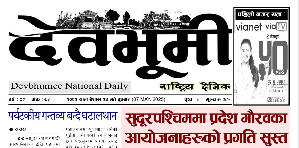 देवभूमी राष्ट्रिय दैनिक २०८२ साल बैशाख २४ गते बुधबार (ई-पेपर) By झिल्काे न्युज On २०८२ बैशाख २४, बुधबार ०६:४२