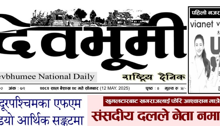 देवभूमी राष्ट्रिय दैनिक २०८२ साल बैशाख २९ गते सोमबार (ई–पेपर) By झिल्काे न्युज On २०८२ बैशाख २९, सोमबार ०७:३८