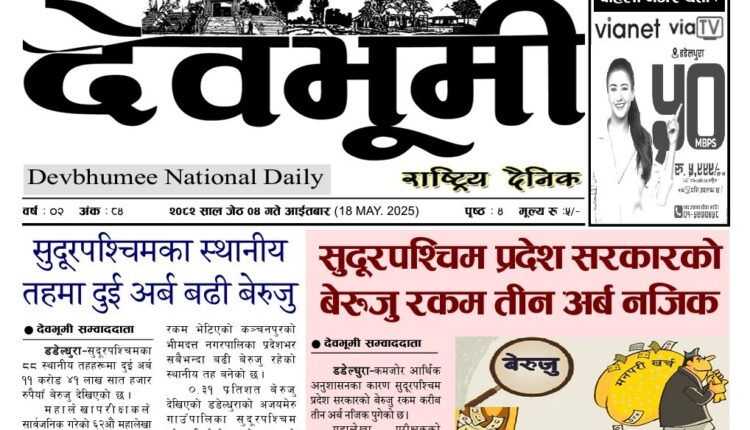 देवभूमी राष्ट्रिय दैनिक २०८२ साल जेठ ०४ गते आईतबार (ई–पेपर) By झिल्काे न्युज On २०८२ जेष्ठ ४, आईतवार ०६:०६