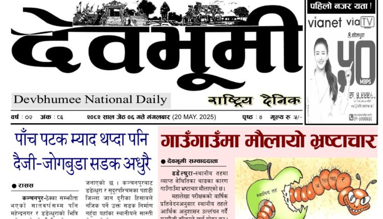 देवभूमी राष्ट्रिय दैनिक २०८२ साल जेठ ०६ गते मंगलबार (ई–पेपर) By झिल्काे न्युज On २०८२ जेष्ठ ६, मंगलवार ०७:५१