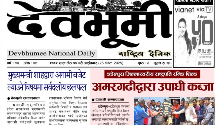 देवभूमी राष्ट्रिय दैनिक २०८२ जेठ ११ गते आईतबार (ई–पेपर) By झिल्काे न्युज On २०८२ जेष्ठ ११, आईतवार ०६:५९