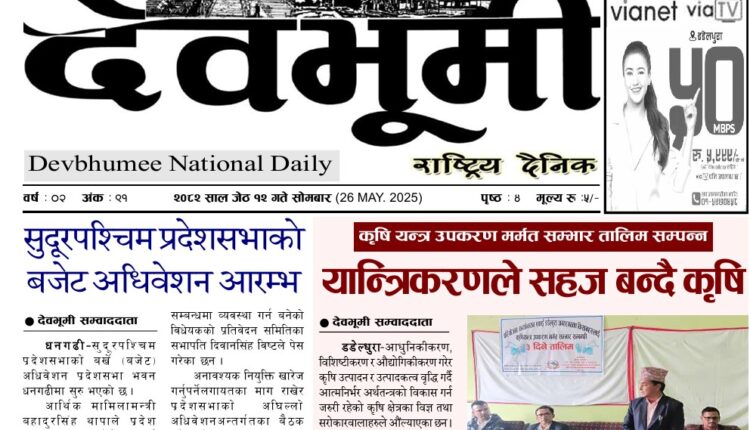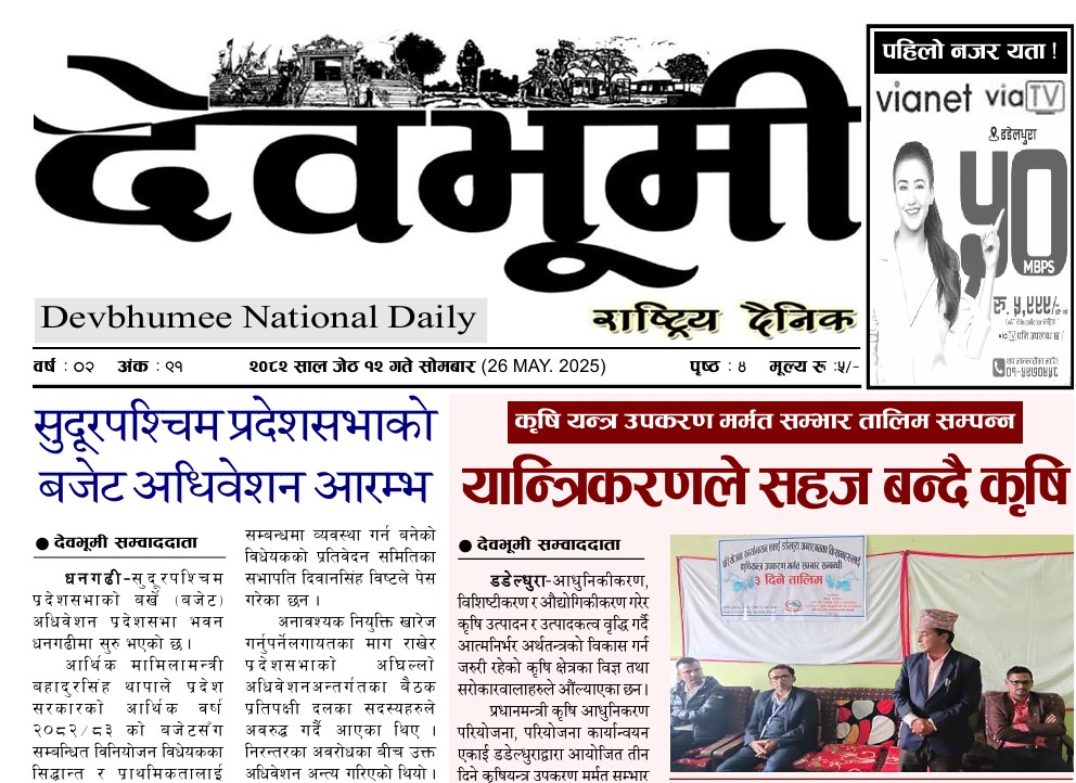 देवभूमी राष्ट्रिय दैनिक २०८२ साल जेठ १२ गते सोमबार (ई–पेपर) By झिल्काे न्युज On २०८२ जेष्ठ १२, सोमबार ०७:१८