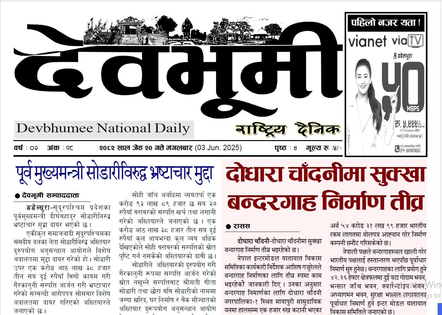 देवभूमी राष्ट्रिय दैनिक २०८२ जेठ २० गते