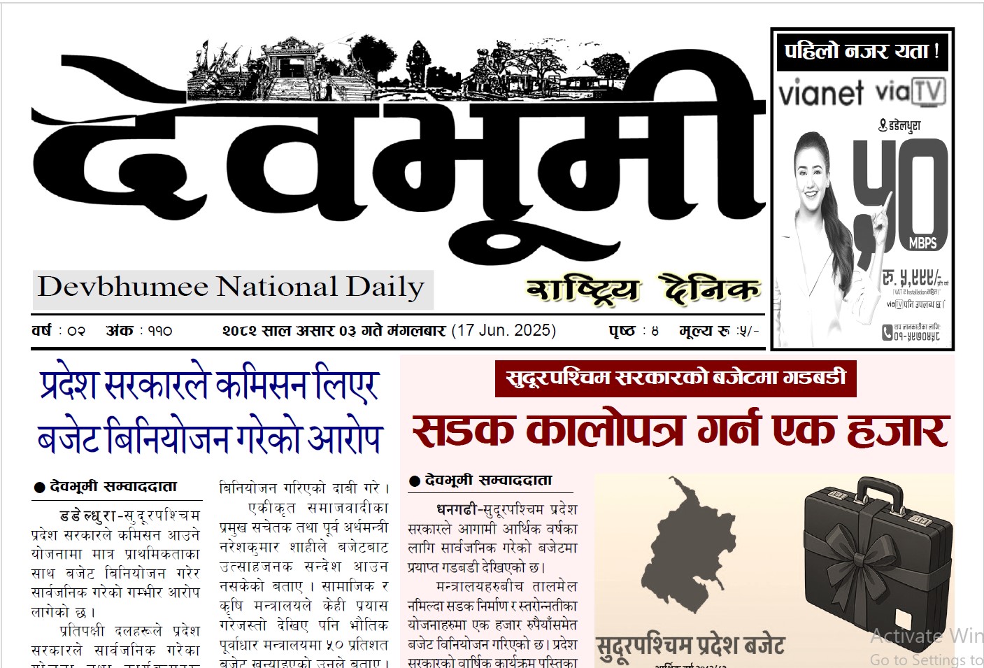 देवभूमी राष्ट्रिय दैनिक २०८२ असार ३ गते