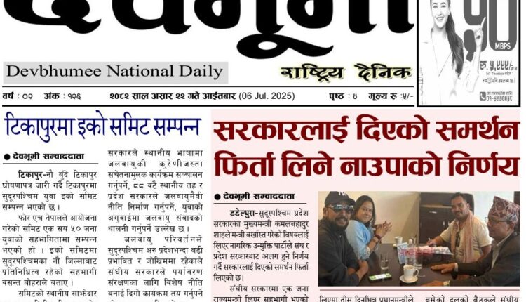 देवभूमी राष्ट्रिय दैनिक २०८२ साल असार २२ गते आईतबार (ई–पेपर) By झिल्काे न्युज On २०८२ असार २२, आईतवार ०७:००