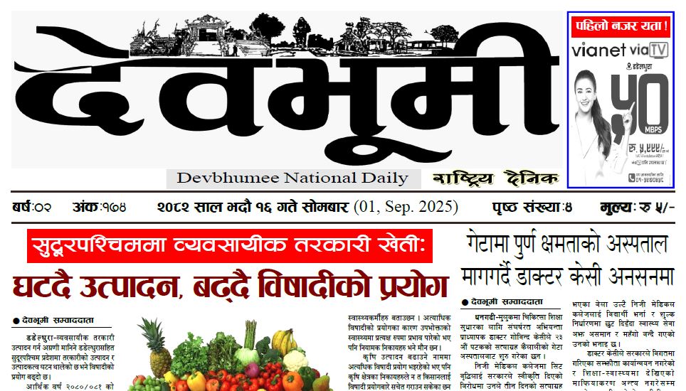 देवभूमी राष्ट्रिय दैनिक २०८२ भदौ १६ गते