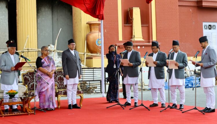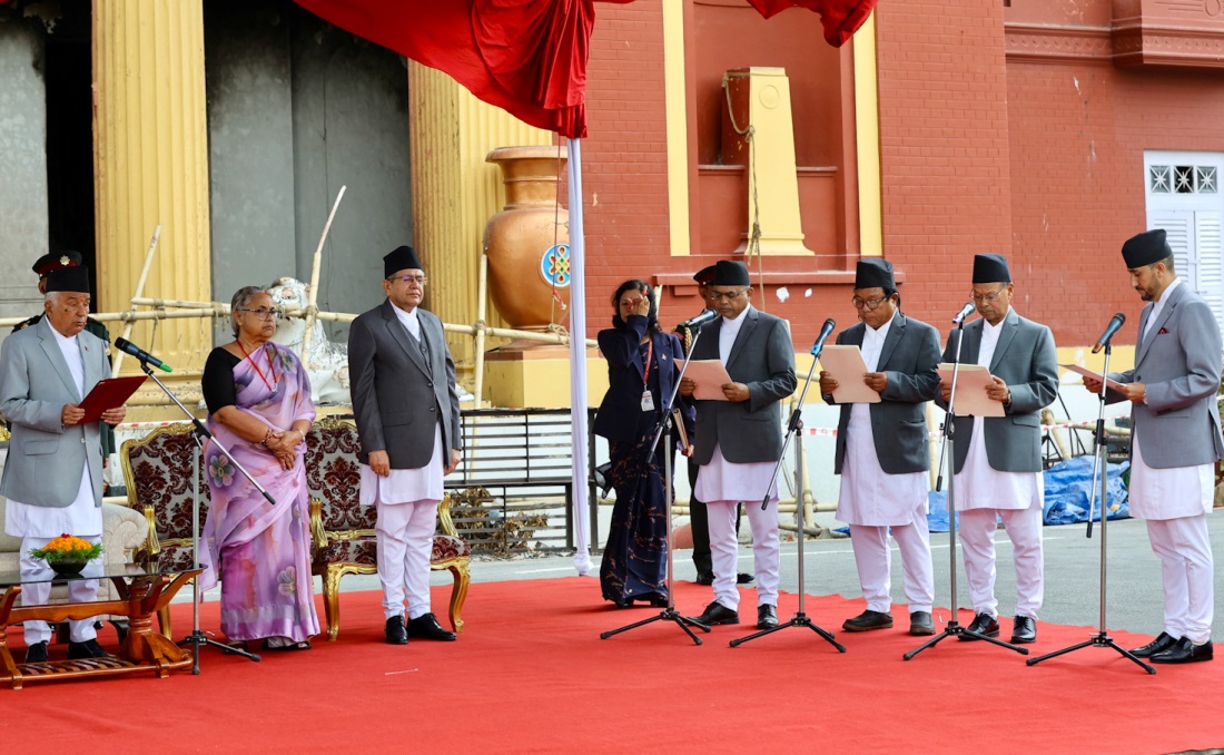 राष्ट्रपति रामचन्द्र पौडेलले नवनियुक्त कानुन न्याय तथा संसदीय मामिला, उद्योग वाणिज्य तथा आपूर्ति र भूमि व्यवस्था सहकारी तथा गरिबी निवारणमन्त्री अनिलकुमार सिन्हा, कृषि तथा पशुपंक्षी विकासमन्त्री मदन परियार, सञ्चार तथा सूचना प्रविधिमन्त्री जगदीश खरेल र शिक्षा विज्ञान तथा प्रविधिमन्त्री महावीर पुनलाई शपथ गराएका हुन् ।