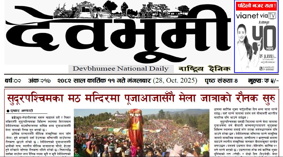 देवभूमी राष्ट्रिय दैनिक २०८२ कार्तिक ११ गते