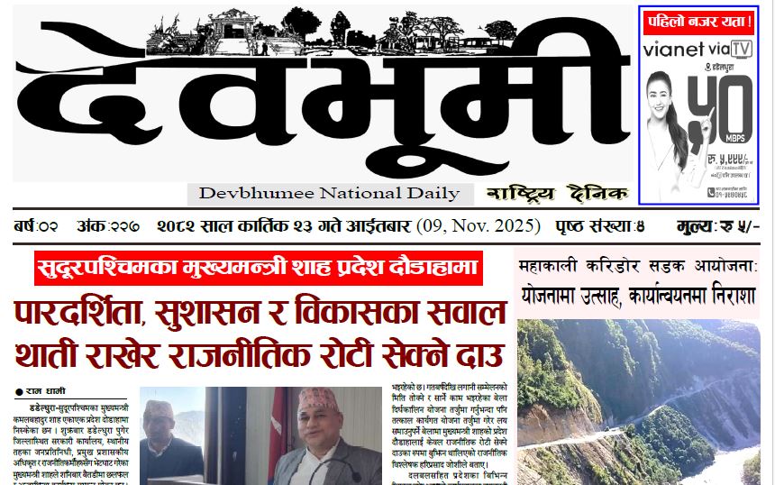 देवभूमी राष्ट्रिय दैनिक २०८२ कार्तिक २३ गते