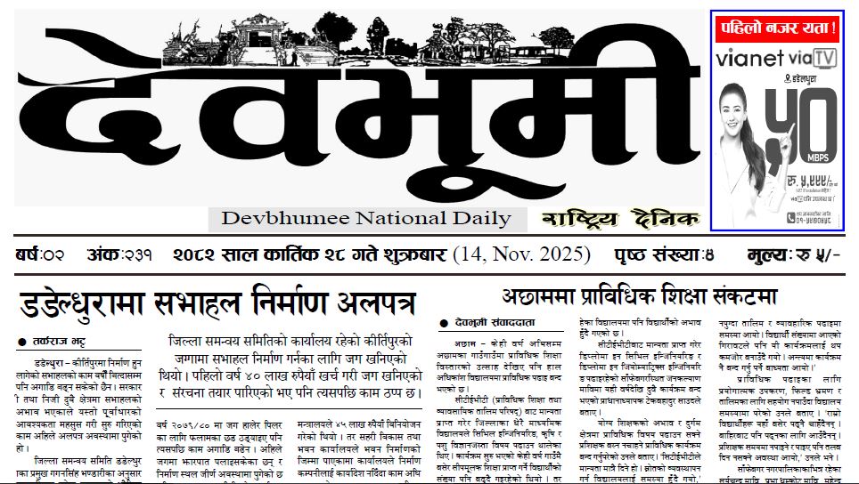देवभूमी राष्ट्रिय दैनिक २०८२ कार्तिक २८ गते