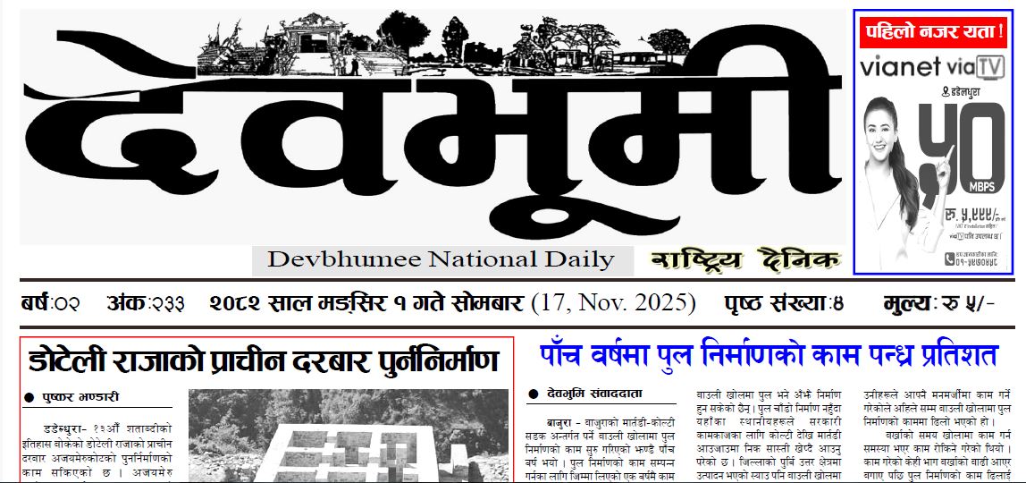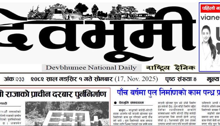 देवभूमी राष्ट्रिय दैनिक २०८२ मंसिर १ गते