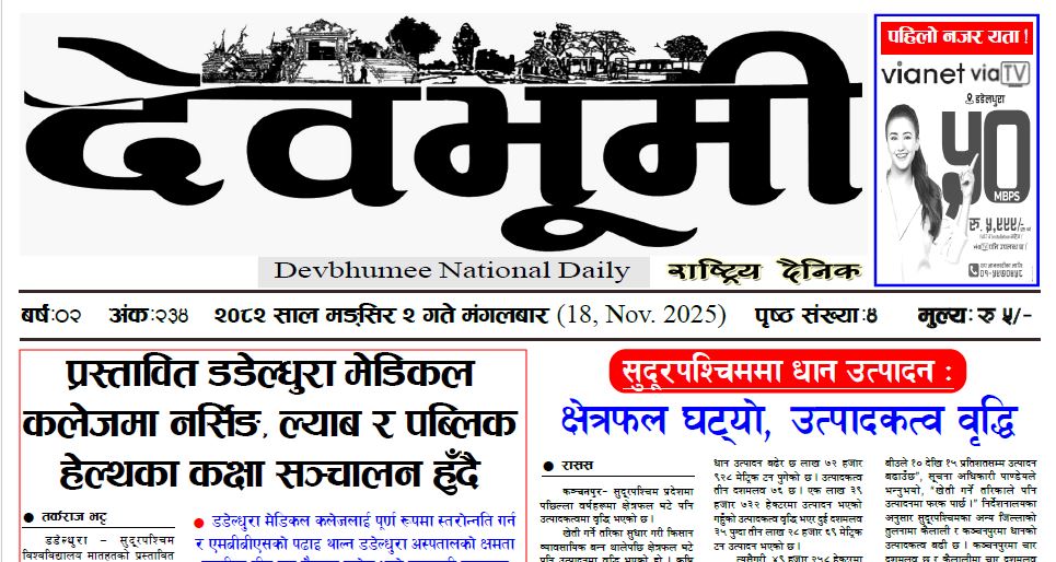 देवभूमी राष्ट्रिय दैनिक २०८२ मंसिर २ गते