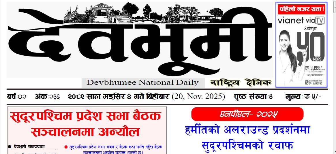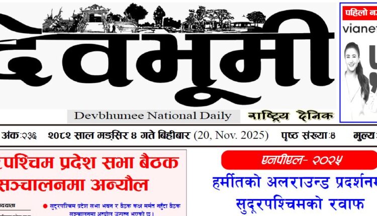 देवभूमी राष्ट्रिय दैनिक २०८२ मसिर ४ गते