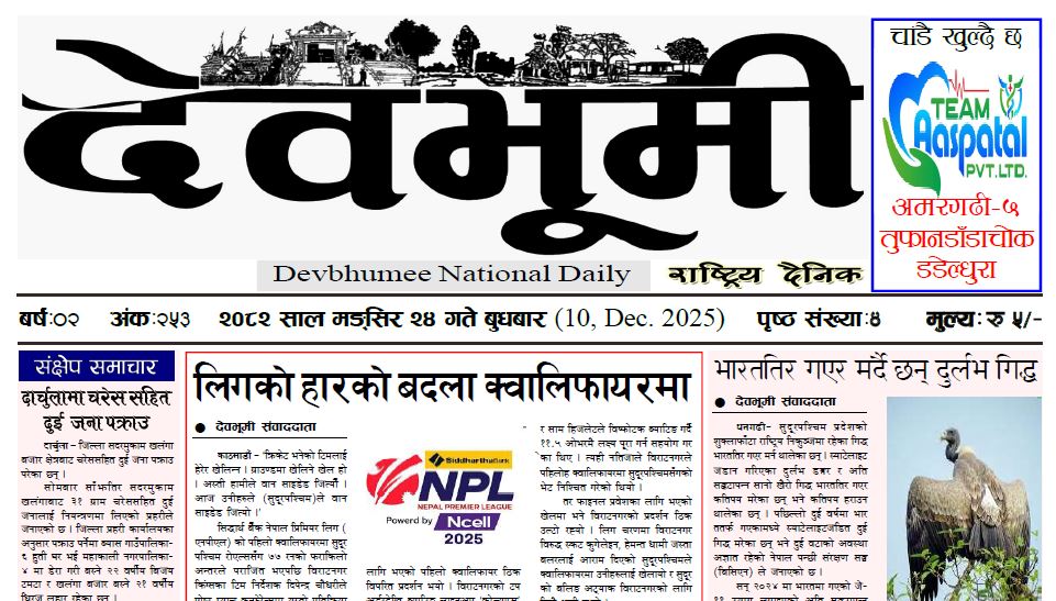 देवभूमी राष्ट्रिय दैनिक २०८२ मंसिर २४ गते