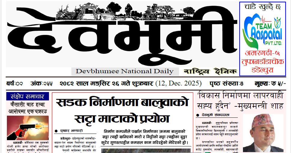 देवभूमी राष्ट्रिय दैनिक २०८२ मंसिर २६ गते