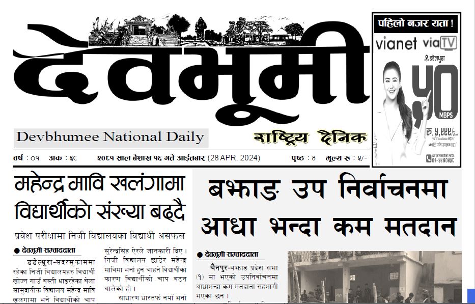 देवभूमी राष्ट्रिय दैनिक २०८१ बैशाख १६ गते