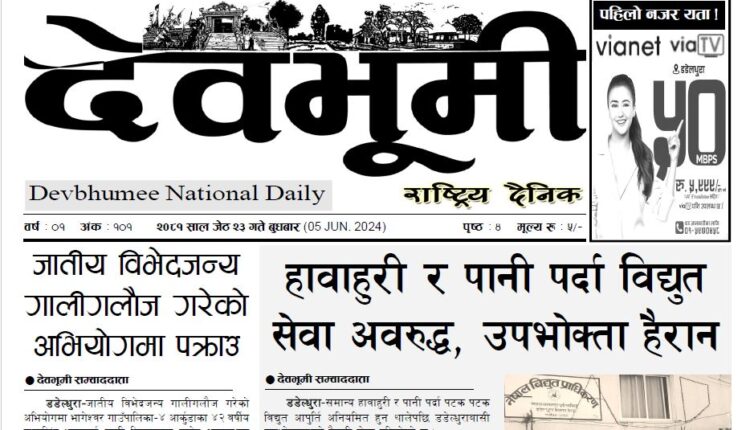 देवभूमी राष्ट्रिय दैनिक २०८१ जेठ २३ गते