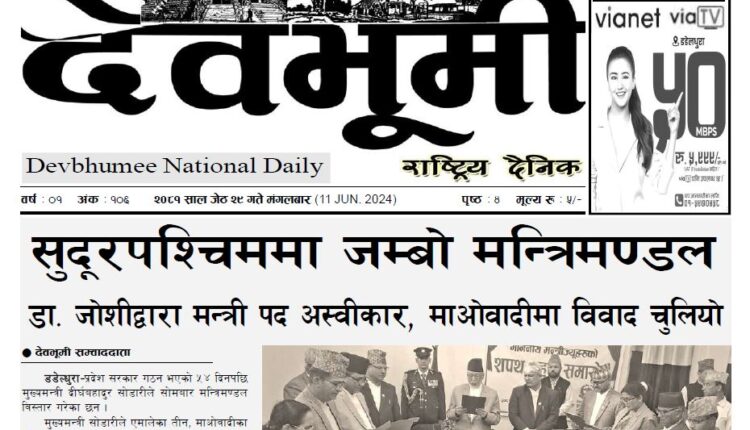 देवभूमी राष्ट्रिय दैनिक २०८१ जेठ २९ गते