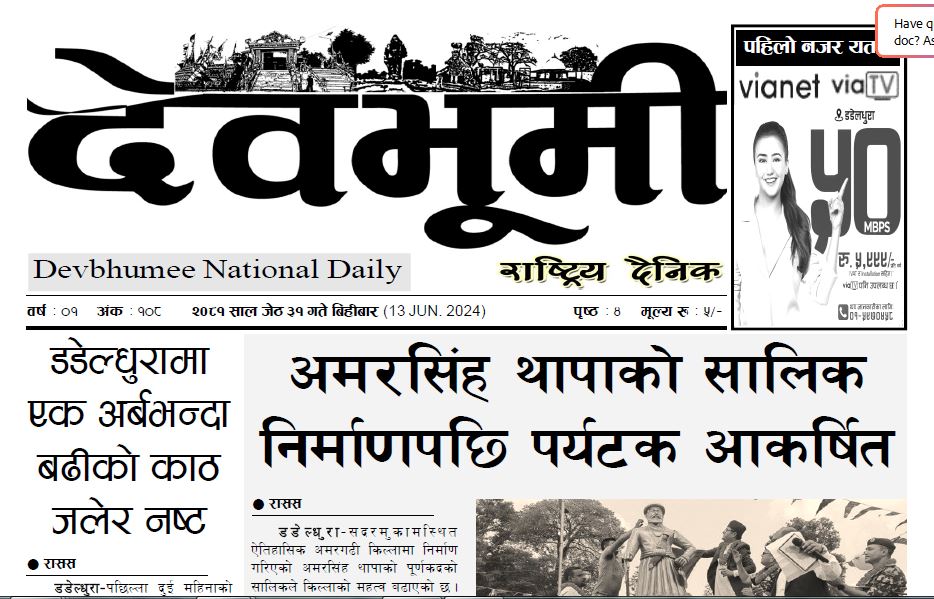 देवभूमी राष्ट्रिय दैनिक २०८१ जेठ ३१ गते