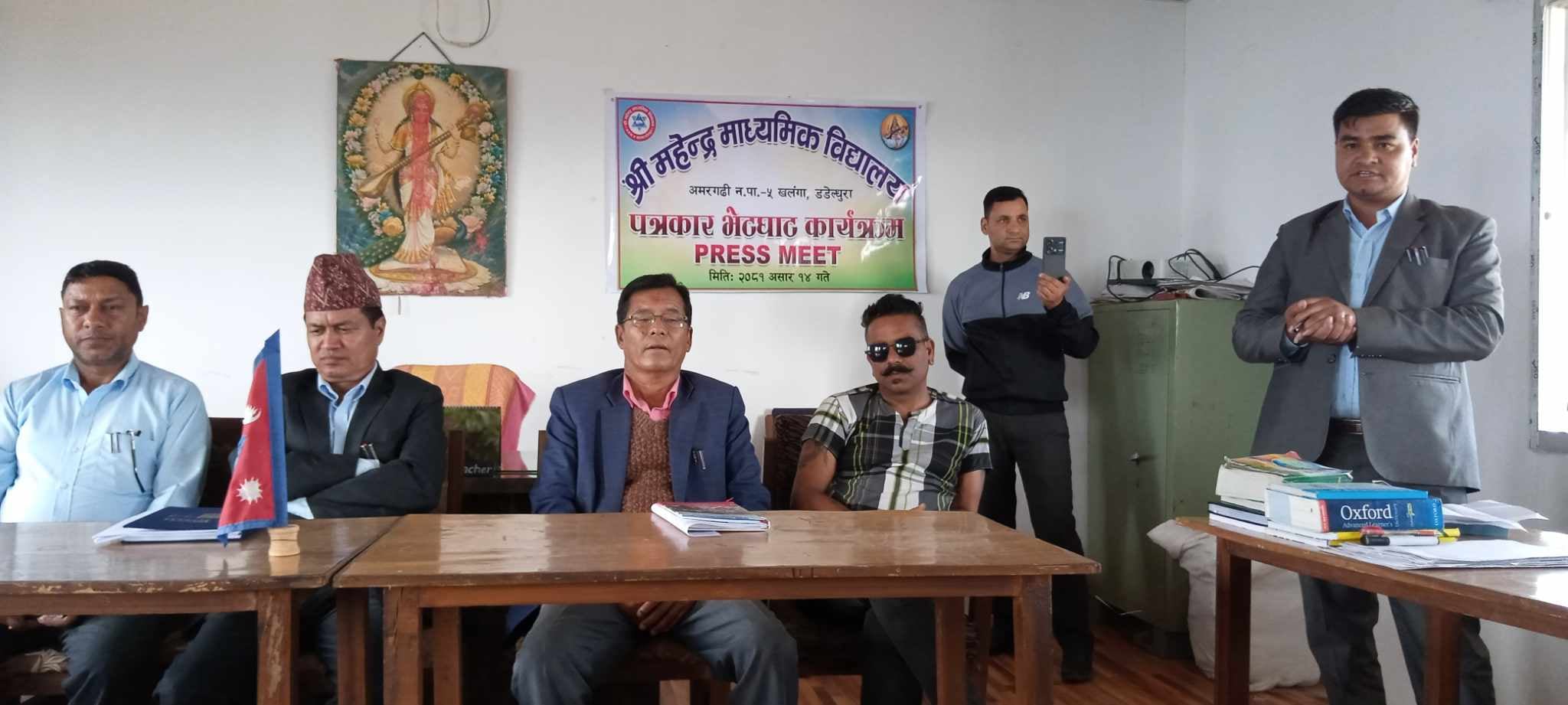 शुक्रबार विद्यालयले पत्रकार भेटघाट कार्यक्रमको आयोजना गरेर विद्यालयका सम्पुर्ण गतिविधीहरुबारेमा जिल्लामा क्रियासिल सञ्चारकर्मीहरुलाई जानकारी गराएको छ । कक्षा ११ र १२ मा नयाँँ शैक्षिक सत्रदेखि नयाँ व्यवस्थापनका साथ विज्ञान तथा आम सञ्चार विषयको समेत पठनपाठन सञ्चालन गरिने विद्यालयका प्रधानाध्यापक सुरेन्द्रसिंह ऐरले जानकारी दिए ।