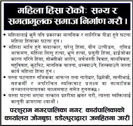 विद्यालय व्यवस्थापन समिति अध्यष शेर सिह माल डायमण्डको अध्यक्षतामा परशुराम नगरपालिकाका शिक्षा अधिकृत लक्ष्मी बिष्टको प्रमुख आतिथ्यतामा धान दिवस मनाइएको हो ।