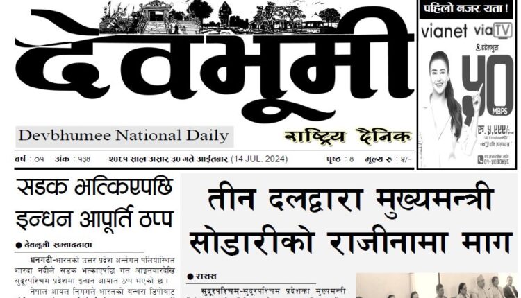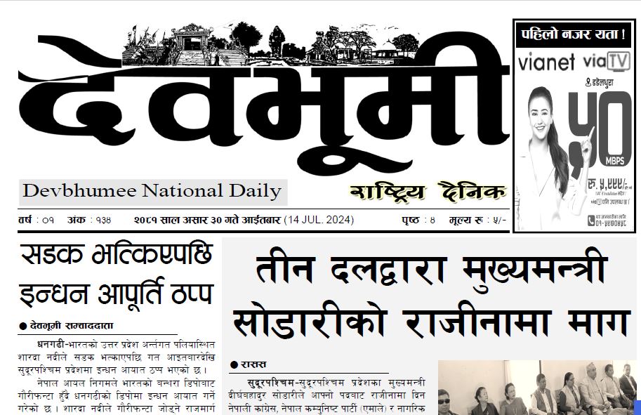देवभूमी राष्ट्रिय दैनिक २०८१ असार ३० गते