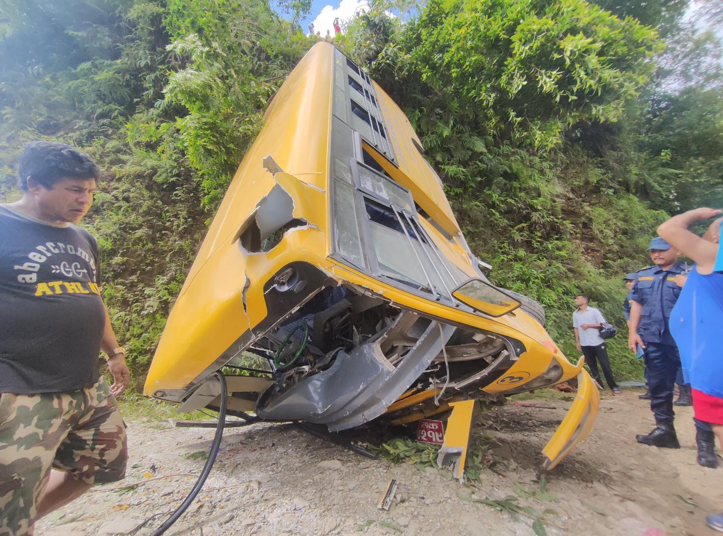 घरबाट विद्यार्थी लिएर स्कूल जादै गरेको एलपी देवकोटा मेमेरियलको बस पोखराको फुस्रेखोलानेर दुर्घटनामा परेको हो । ग१क ६३१९ नम्बरको बस सडकबाट झन्डै ६० मिटर तल खसेको छ ।