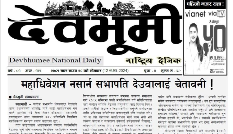 देवभूमी राष्ट्रिय दैनिक २०८१ साउन २८ गते