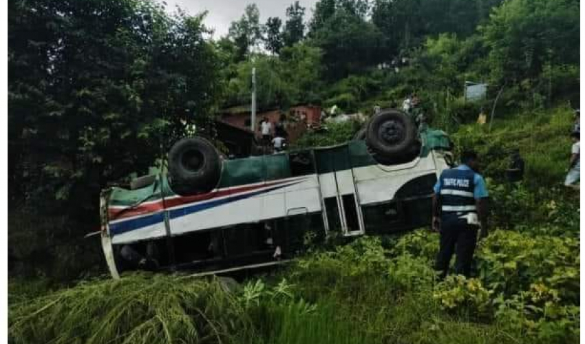 धनगढीबाट दिपायल जाँदै गरेको शैलेश्वरी यातायातको ना ५ ख ४४५१ नम्बरको बस आज (शुक्रबार) बिहान दुर्घटना भएको जिल्ला प्रहरी कार्यालय डोटीका सूचना अधिकारी भीमलाल भट्टराइले बताए । दुर्घटनामा घाइते भएकाहरूको राजपुरस्थित सुजङ अस्पतालमा उपचार भइरहेको छ। बस सडकबाट करिब ३५ मिटर तल खसेको छ ।