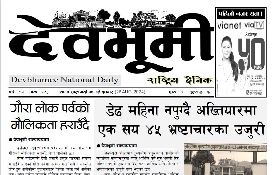 देवभूमी राष्ट्रिय दैनिक २०८१ भदौ १२ गते