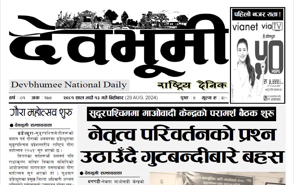 देवभूमी राष्ट्रिय दैनिक २०८१ भदौ १३ गते
