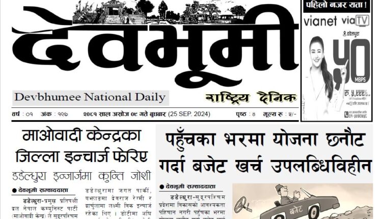 देवभूमी राष्ट्रिय दैनिक २०८१ असोज ९ गते
