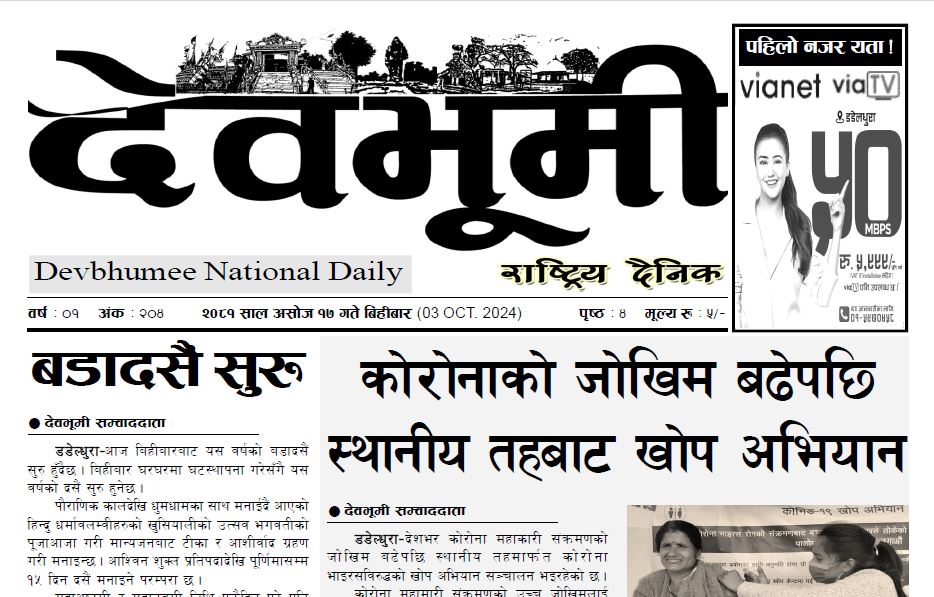 देवभूमी राष्ट्रिय दैनिक २०८१ असोज १७ गते
