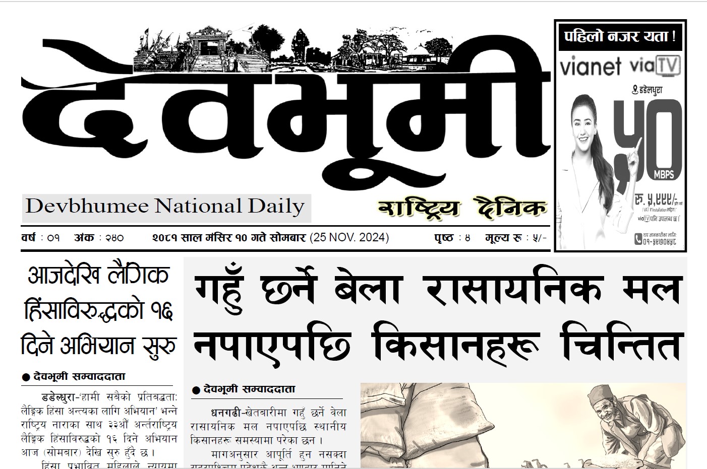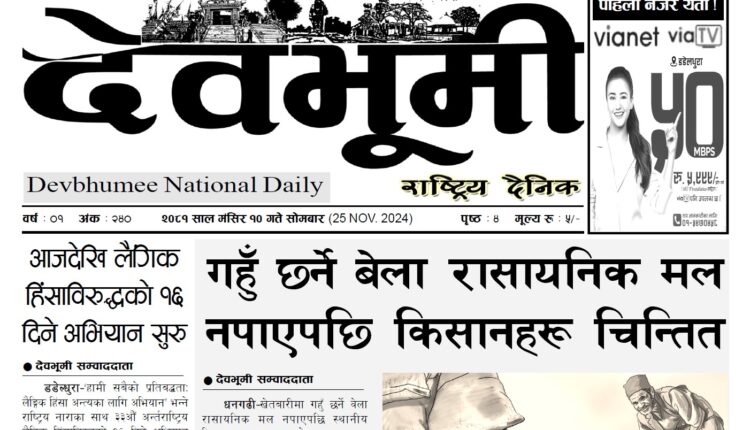 देवभूमी राष्ट्रिय दैनिक २०८१ मंसिर १० गते