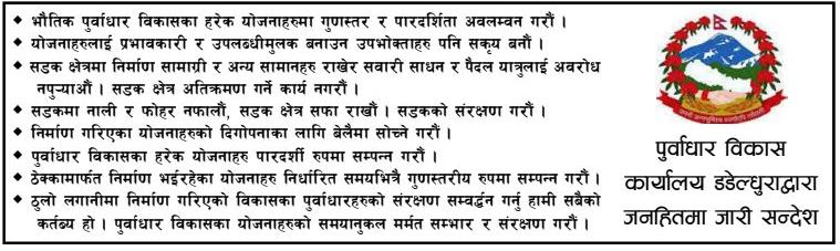 डडेल्धुरा- डडेल्धुरामा पोखरीमा डुबेर बालिकाको मृत्यु भएको छ । जिल्ला प्रहरी कार्यालय डडेल्धुराका प्रहरी निरीक्षक उपेन्द्र बमका अनुसार मंगलबार दिउँसो गन्यापधुरा गाउँपालिका–२ कालापानीका गणेश मालीको साढे दुई वर्षकी छोरी रिया मालीको डुबेर मृत्यु भएको हो ।